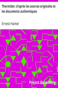"Thermidor: d'après les sources originales et les documents authentiques" by Ernest Hamel is a historical account likely written in the late 19th century. The book explores one of the most debated episodes of the French Revolution: the fall of Maximilien Robespierre, often seen through the lens of political intrigue and the consequences of revoluti...